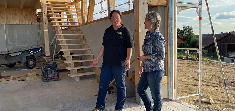 Rika und Beate hatten an diesem Wochenende genug Zeit, um sich an der Reithallen-Baustelle den fertigen Seminarraum, die zukünftigen Reiter mit ihren Pferden sowie den Besucherbereich vorzustellen. Beide waren sich einig: “scheee wird's!"
